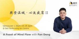 A Feast of Mind Flow with FanDeng (in Mandarin) Yes, you understood it right: China’s best book talker, Mr. Fan Deng, is coming to Vancouver! It's been seven years since his last visit. In those seven years, Fan Deng Reading Club has officially changed its name to Fanshu app, and its registered user have soared from 7.15 million in June 2018 to over 78 million by August 2025. This time, he will still use his extensive knowledge and humorous speaking skills to bring a soul resonance and
